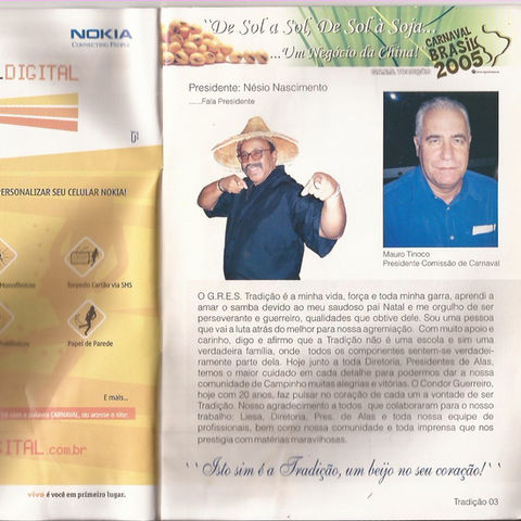 Esta fantástica festa chinesa, será reproduzida pela TRADIÇÃO em pleno carnaval 2005. Transformando a passarela do samba em uma magnífica China Tropical.